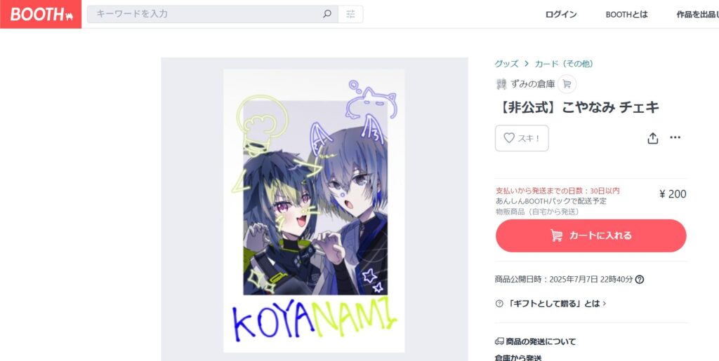 さらに2025年6月には同人グッズ通販サイトBOOTHで頒布される商品名に「こやなみ」が使われる例があり(BOOTH販売ページ)、コミュニティの外縁にまで定着が進んでいることがうかがえます。