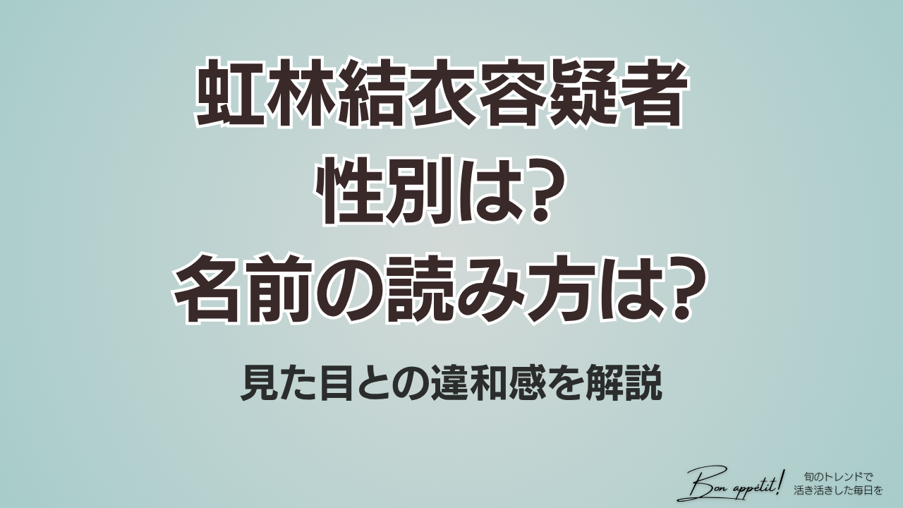 - 虹林結衣(にじばやし ゆい)容疑者は戸籍上は男性として警察が発表。報道もそれに基づき「男」と記載。